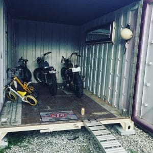 12フィートJRコンテナをアイボリーで塗装し、FIX窓を取付たものになります。バイク2台のガレージとして