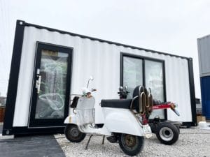 作りかけの事務所とベスパとジャイロX20フィートスタンダードコンテナを事務所に加工しております。①外壁は遮熱塗料仕上げ②室内は結露防止材塗料仕上げ③ドア、窓取り付け、複層ガラス(ペアガラス)室内は断熱材を使用する事なく、 […]