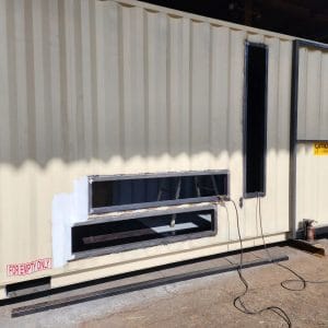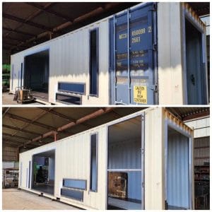 下地枠取り付け40feet96'(クンロクsize、背高)横or縦スリット窓の下地枠の取付けになります。サイドパネルをくり貫いた所に角パイプをフル溶接で取付けてます。★40feetの海上コンテナ(ISO規格)を […]