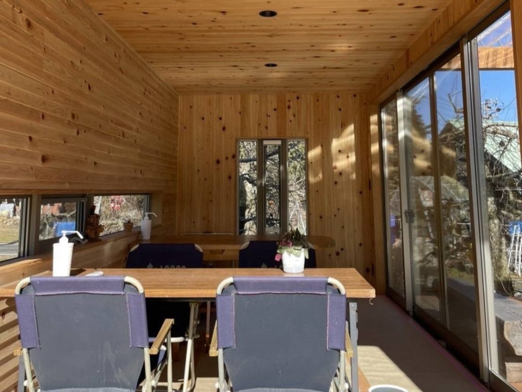 - 贅沢な総ヒノキ内装: 木の温もりと香りに包まれた空間は、心身ともにリラックスできる特別な場所。調湿効果や防虫効果も期待できます。東海地方では木曽ヒノキが有名ですが、コンテナジョニーの本社がある岐阜県恵那市も東濃ヒノキの産地として有名ですよ。